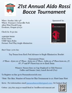 19th Annual Aldo Rossi 4 Person Bocce Tournament! *Click on the form, Print it out and mail it.