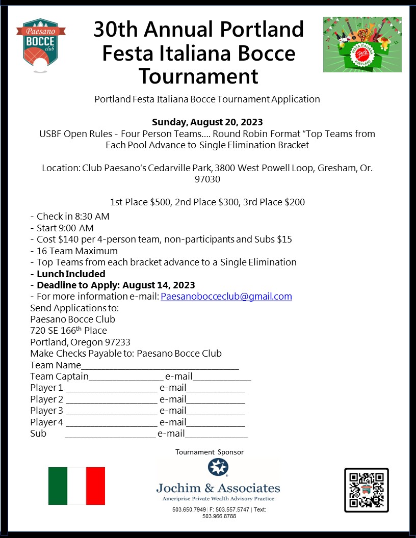 30th Annual Festa Italiana Bocce Tournament